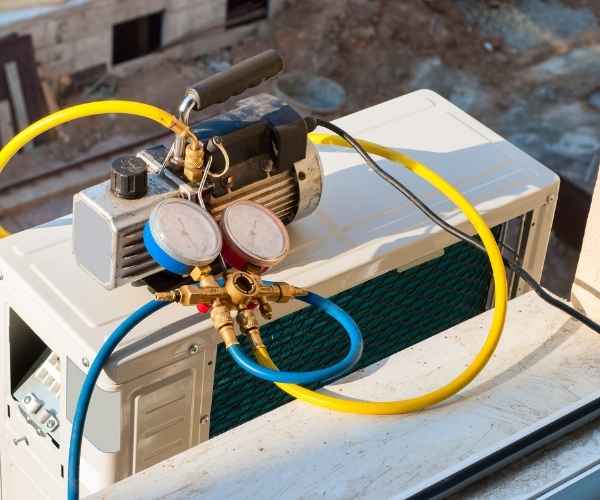 Low refrigerant typically means there is a leak. The technician checks the levels and examines for signs of leaks to ensure your AC can cool your room properly.